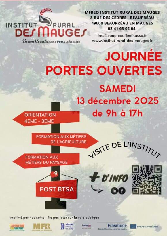 L'Institut Rural des Mauges ouvre ses portes le samedi 13 décembre 2025 de 9h à 17h.